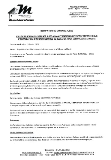 Avis de mise en concurrence suite à manifestation d’intérêt spontanée pour l’installation d’infrastructures de recharge pour véhicules électriques.