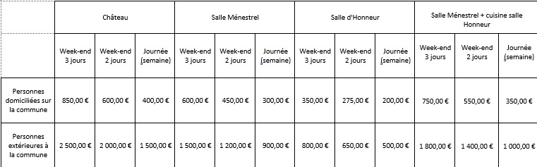 Tarifs de location :