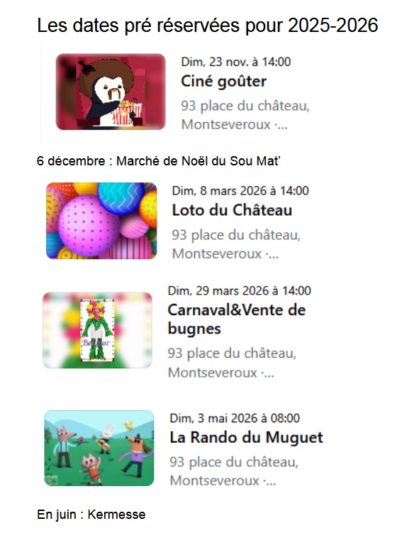 Le sou des écoles est une association de parents d’élèves ayant pour but de récolter des fonds pour financer les projets pédagogiques de l’école primaire de Montseveroux.